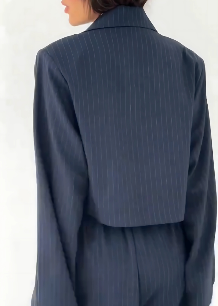 Un ensemble élégant et moderne qui réinvente le tailleur classique . Avec son bustier structuré et sa veste fluide sans fermeture , il marie minimalisme et sophistication pour une allure affirmée et résolument tendance .