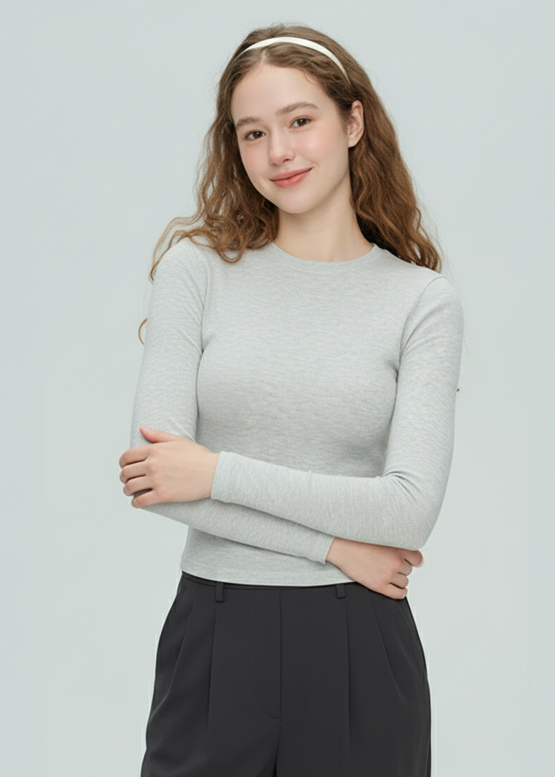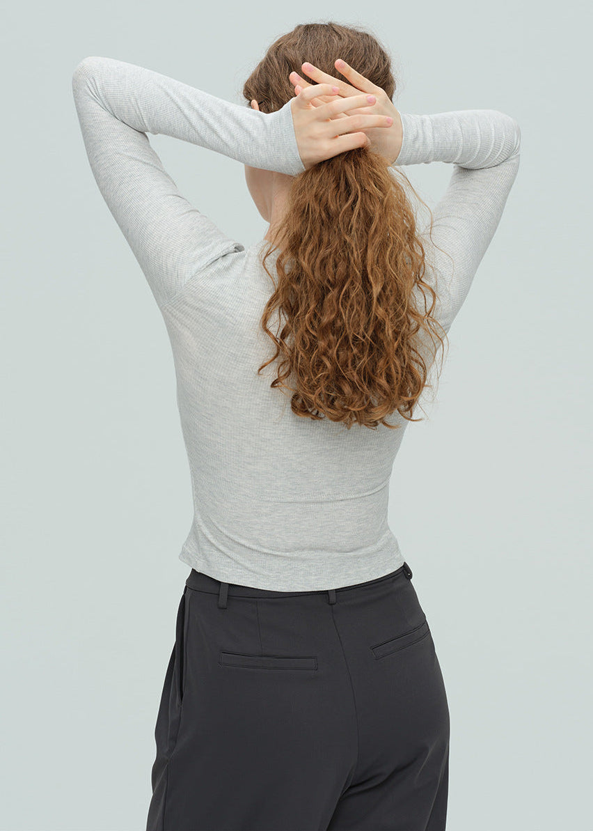 Le col ras du cou et les manches fines apportent une touche minimaliste et moderne , facile à associer à toutes les pièces du dressing. Porté rentré dans un pantalon ou avec un jean taille haute, il crée une allure équilibrée et féminine .