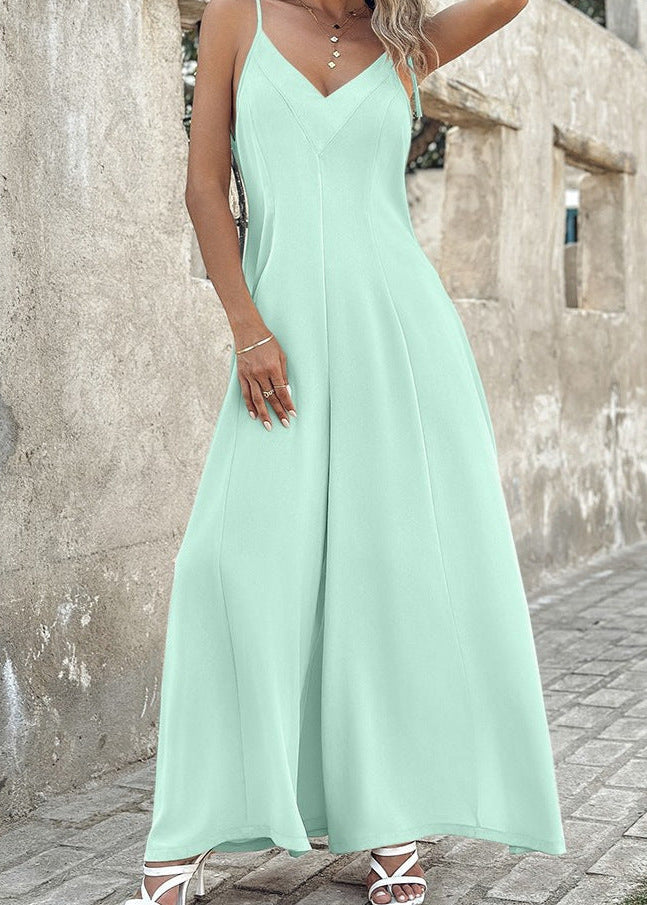 Adoptez un style léger et raffiné avec cette combinaison à bretelles au tombé fluide. Sa coupe large allonge la silhouette tandis que son tissu doux en polyester assure un confort optimal tout au long de la journée.
