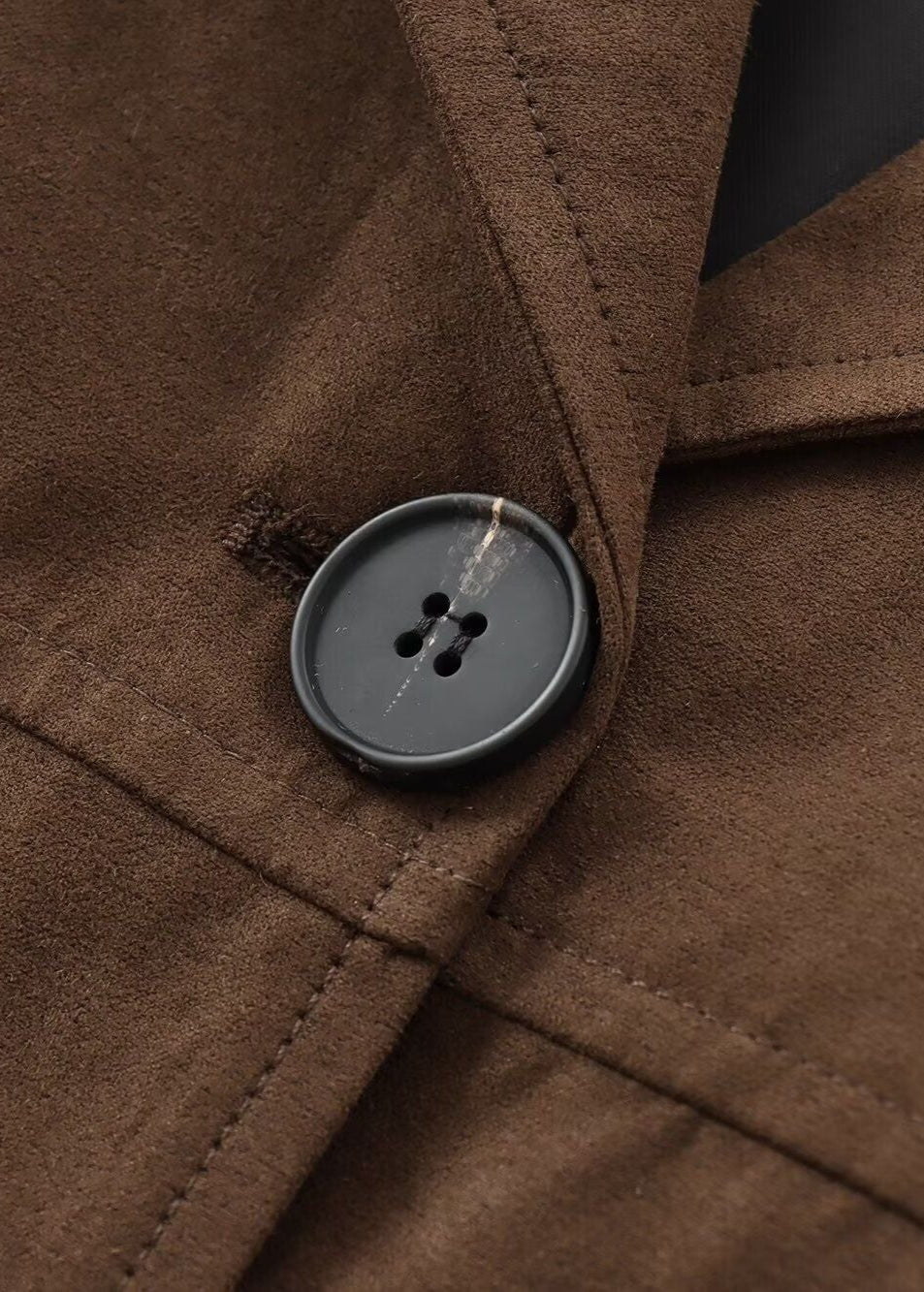 Apportez une touche élégante et moderne à vos looks avec cette veste en daim marron. Son design minimaliste et sa coupe droite en font une pièce sophistiquée et intemporelle , parfaite pour compléter aussi bien une tenue de bureau qu'un style plus décontracté.