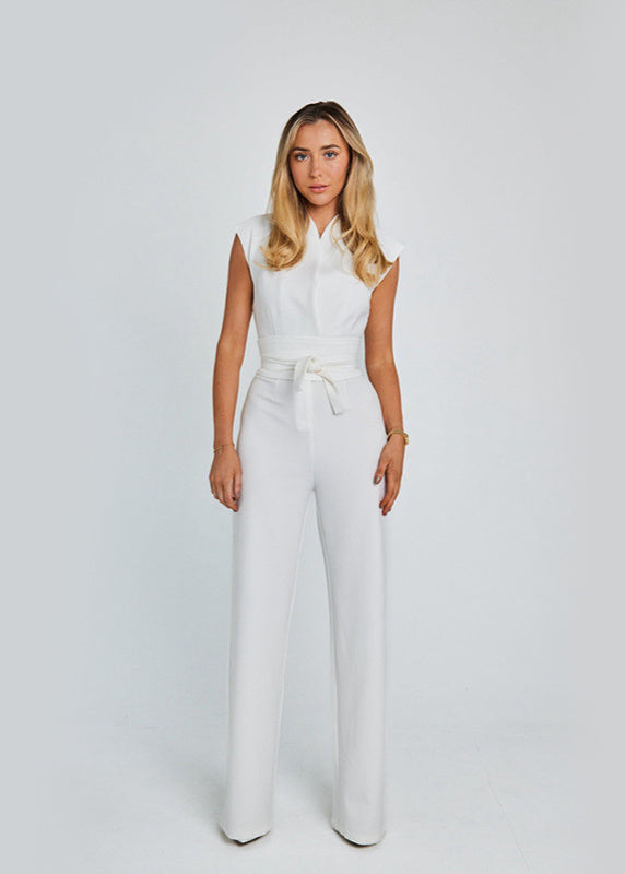 Inspirée du vestiaire tailleur, cette combinaison au style épuré sublime la silhouette avec sa taille haute ceinturée et son col structuré. Parfait pour les femmes qui veulent imposer leur style avec raffinement, que ce soit au bureau, en réunion ou pour une soirée habillée.